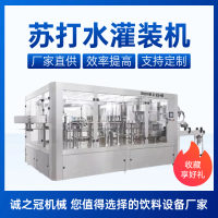 产品介绍 product introduction 含汽饮料/苏打水灌装机适用于各种含气饮料等灌装生产,如:苏打水,可乐,汽水等含汽饮料的灌装。苏打水灌装机采用卡瓶颈传动技术,实现全自动冲瓶、灌装、旋盖等工序,自动化程度高;配有CO²压力控制精确,液位控制稳定;设有多处卡瓶、缺瓶、缺盖、过载等保护报警装置,确保出品质量。 产品细节 product details 1.瓶子进入主机后通过传输星轮进入冲瓶机